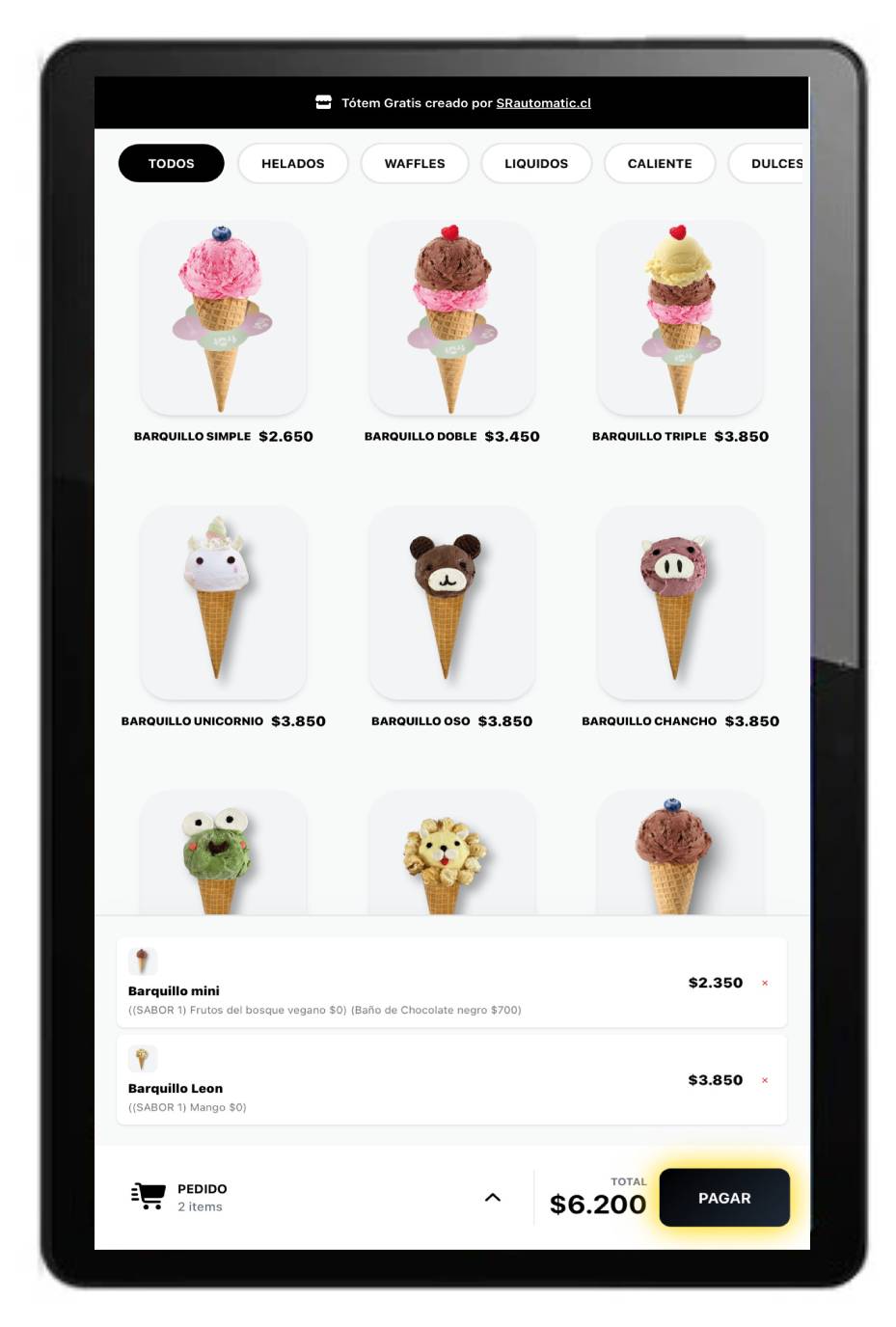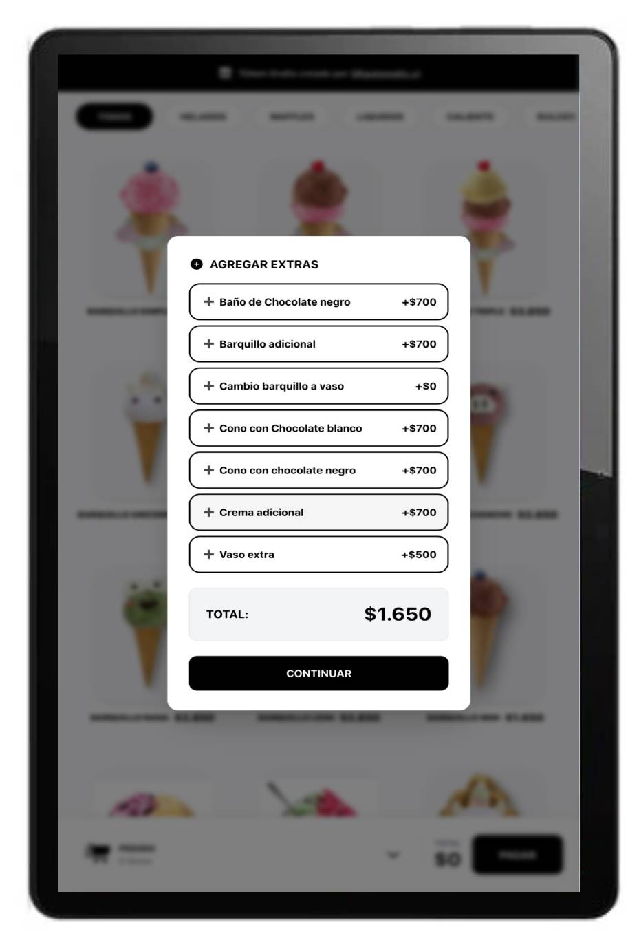 -Los pedidos los crea directamente el cliente, seleccionando exactamente lo que el desea y agregando extras sin presiones.